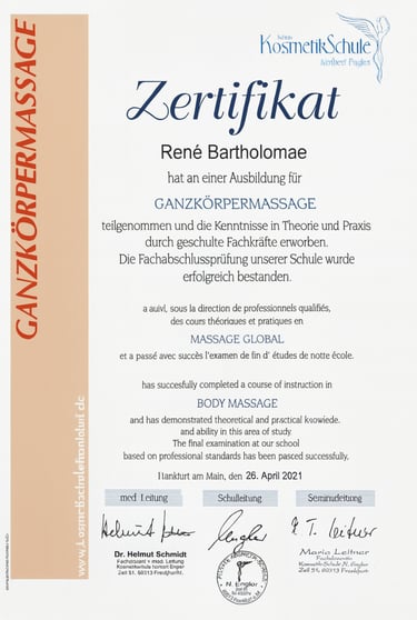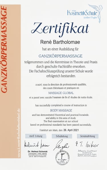 Ich bin René Bartholomae, zertifizierter Masseur und angehender Fitnessökonom mit mehrjähriger Erfahrung im Bereich Massage und Regeneration. Meine Arbeit folgt einem klaren Anspruch: professionelle, verlässliche und qualitativ hochwertige Massage, die den Körper spürbar unterstützt und den Alltag nachhaltig erleichtert. Als Sportler weiß ich, welchen Wert gezielte Erholung hat .Genau dieses Verständnis prägt jede meiner Anwendungen.